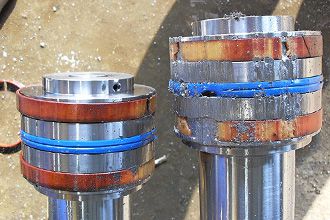 ü Erosión:pueden presentarse desgastes en los sellos por el movimiento normal del cilindro de un extremo a otro, o debido a una acumulación de presión atrapada debajo del mismo que lo empuja hacia el cuerpo del cilindro. Además, el uso de fluido hidráulico incompatible con el tipo de cilindro es causante de fallas, por lo que se debe evaluar que el material de los sellos y el fluido sean compatibles, de tal manera que resista el tiempo necesario.